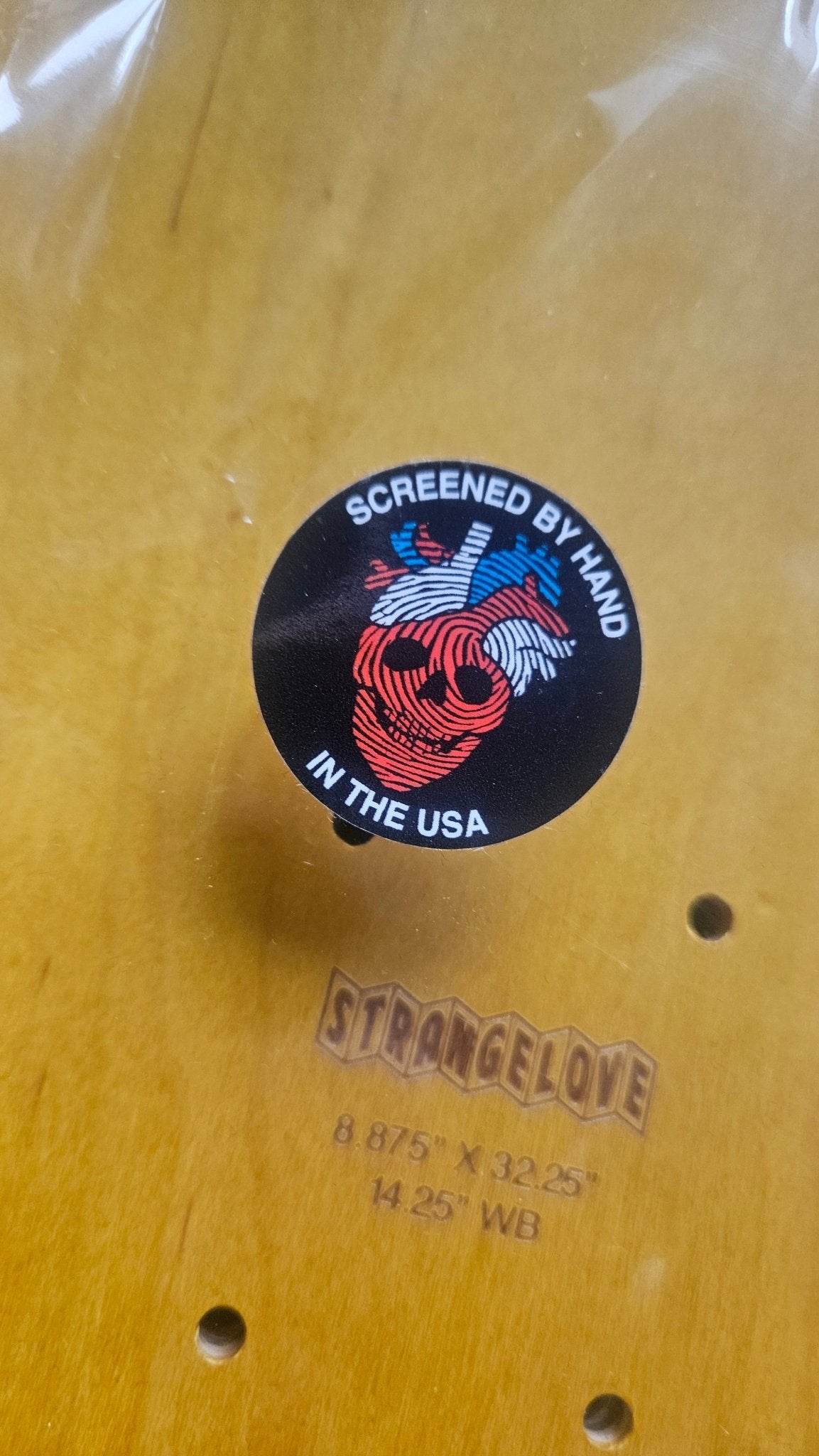 The Strangelove Skateboards Heart Skull "Black Velvet" Deck features Sean Cliver’s signature artwork, screen-printed by hand at Screaming Squeegees. Manufactured at BBS Mfg., this 8.875" deck carries a unique, tactile velvet texture applied in a controlled process. Each board is individually screened, making every print distinct.